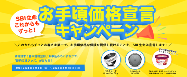 SBI生命保険株式会社(本社:東京都港区、代表取締役社長:小野尚、以下「SBI生命」)は、2023年2月1日(水)より「SBI生命 これからもずっと!お手頃価格宣言キャンペーン」(以下、「本キャンペーン」)を実施いたします。