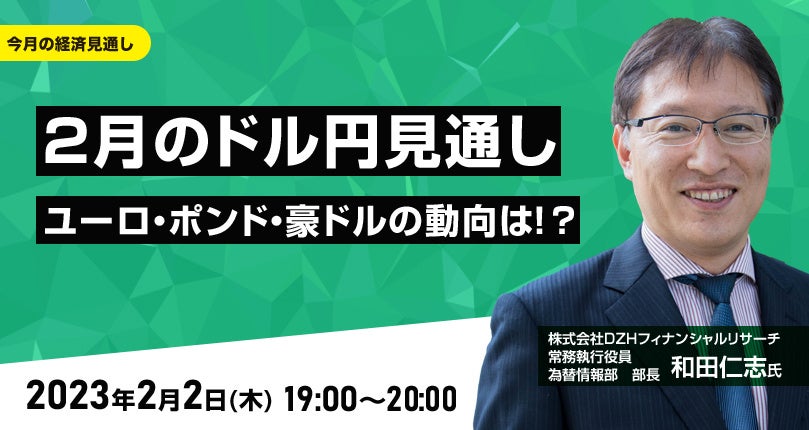 株式会社外為どっとコム(本社:東京都港区、代表取締役社長:竹内 淳)は、明日2月2日(木)19時より、当社主催の無料オンラインセミナー『2月のドル/円見通し ユーロ、ポンド、豪ドルの動向は!?』を開催することとなりましたので、お知らせいたします。