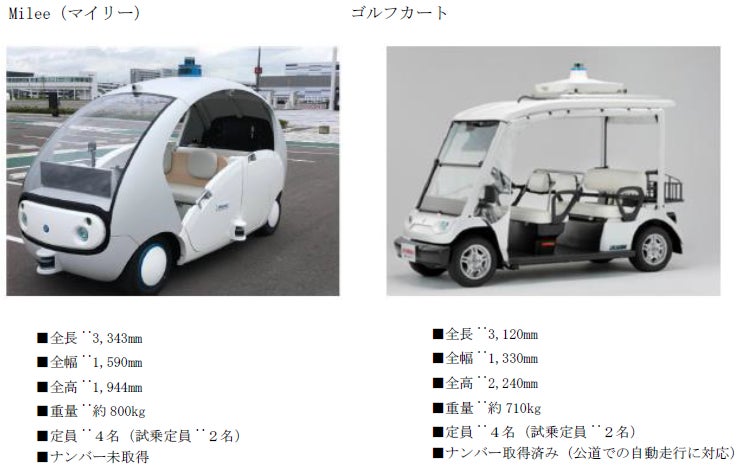 周囲の物体検出、自車位置の推定、走行経路の策定、運転判断といった自動運転に必要となる機能を備えた2台の車両を使用