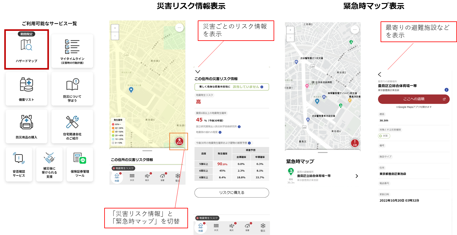 新生活に向けた新居探しなどで防災について考える機会も多いこの時期に、多くのみなさまに、ハザードマップのご確認などを通してお住まいの周りの災害リスクの状況や避難場所などをご確認いただき、「備え」の必要性・重要性を改めて実感していただく契機をご提供できればと考えております。なお、「SA・PO・PO」のご利用にあたっては、当社マイページへのID登録が必要となります。