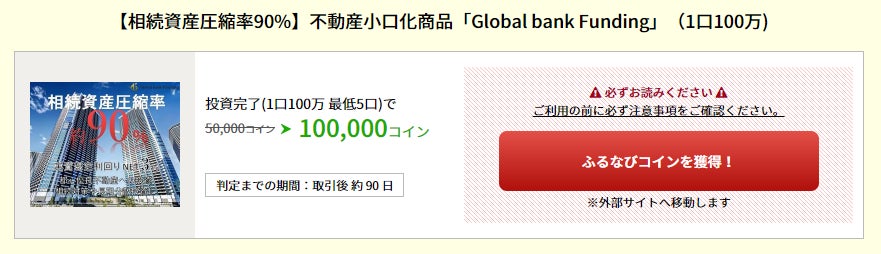 今なら、投資完了で100,000コインプレゼント中です。ぜひこの機会にお申込みください。