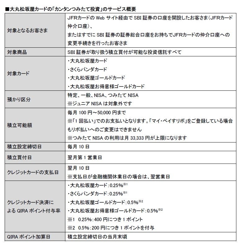 また、サービスの開始を記念して、大丸松坂屋カードによる投資信託の購入金額に対して付与されるQIRA[キラ]ポイントの付与率を、1%または2%(通常は0.25%または0.5%)にアップするスタートダッシュキャンペーンを実施します。