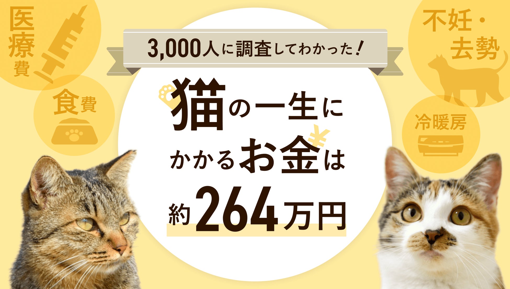 3,000人アンケートの結果、猫の一生でかかるお金は平均2,646,956円でした。