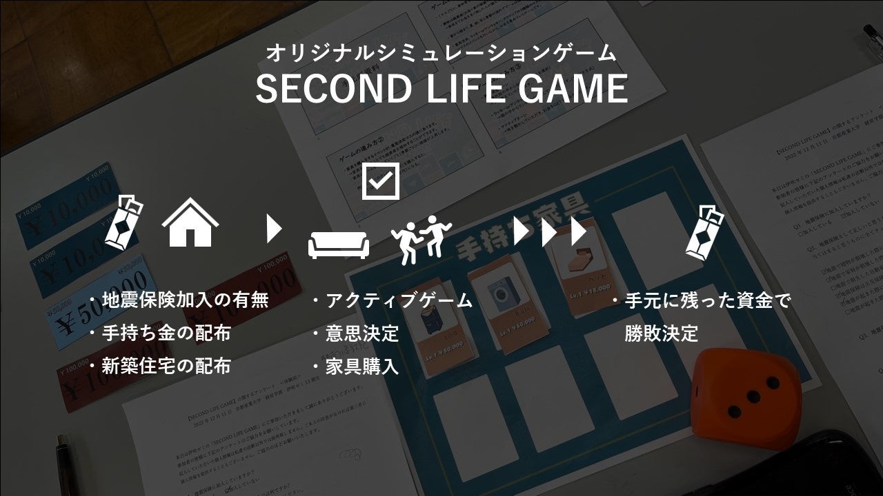 京都産業大学経営学部伊吹勇亮ゼミナール13期生(以下伊吹ゼミ13期生)は2022年12月11日に京都南青少年活動センターにて、地震保険の重要性を訴えるオリジナルシミュレーションゲーム“SECOND LIFE GAME”を開催しました。