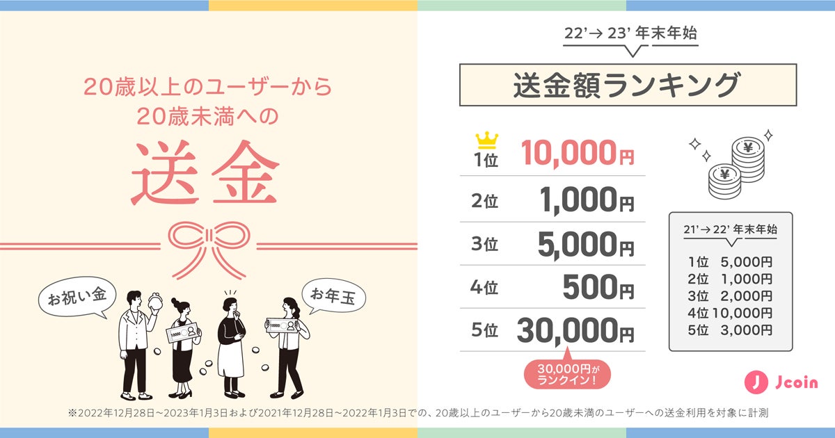 • お年玉・新成人お祝い金での送金利用が増加し、送金1件あたりの金額は2.3倍となり平均1万円を突破