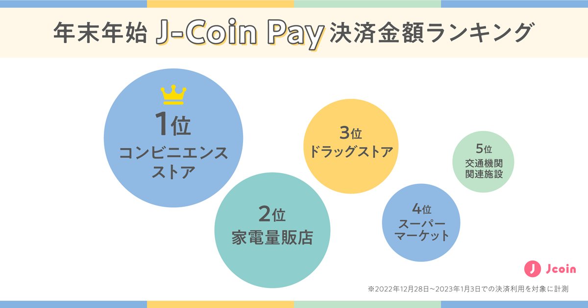 株式会社みずほ銀行が提供する、キャッシュレス決済サービス 『J-Coin Pay(ジェイ コイン ペイ)』における、年末年始でのユーザー利用動向まとめを発表します。(調査実施:みずほ銀行、調査対象期間:2022年12月28日〜2023年1月3日)
