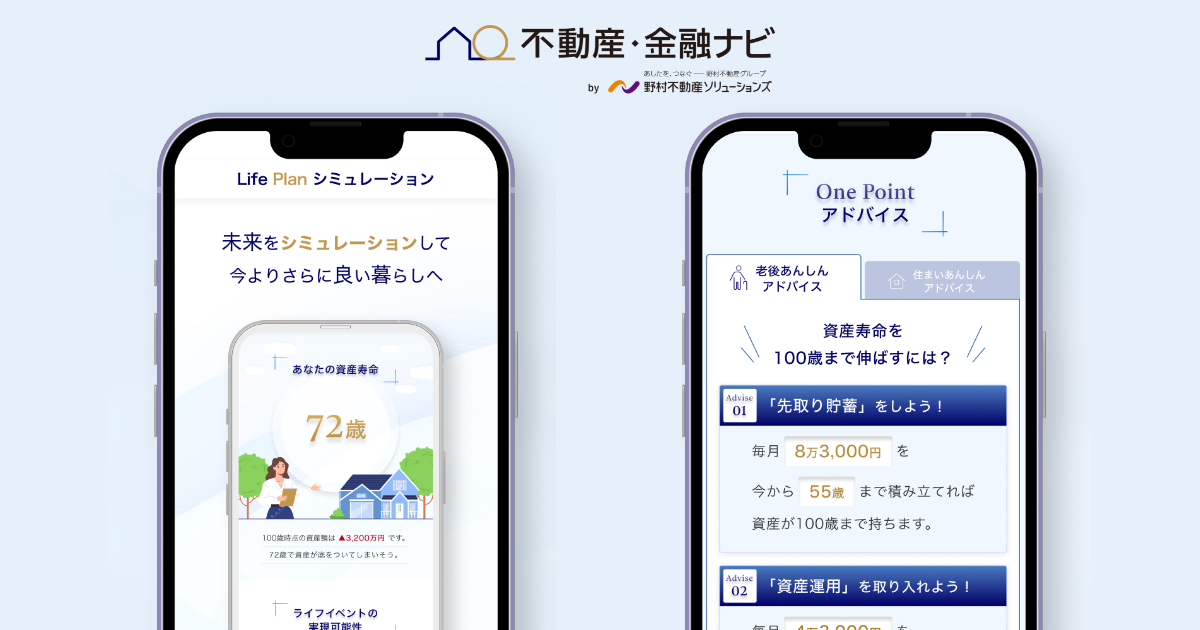 ※1 「不動産・金融ナビ」とは、野村不動産ソリューションズを通じて住宅を購入されたお客さまがご利用いただける、資産形成等に役立つシミュレーションツールです。