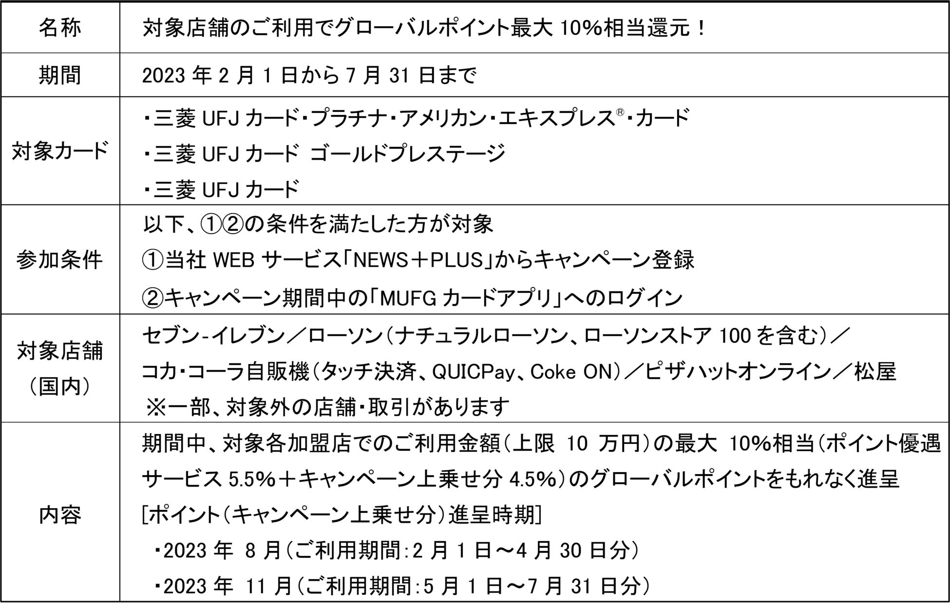 2月1日から7月31日まで、対象店舗での三菱UFJカードご利用でポイント最大10%相当還元!