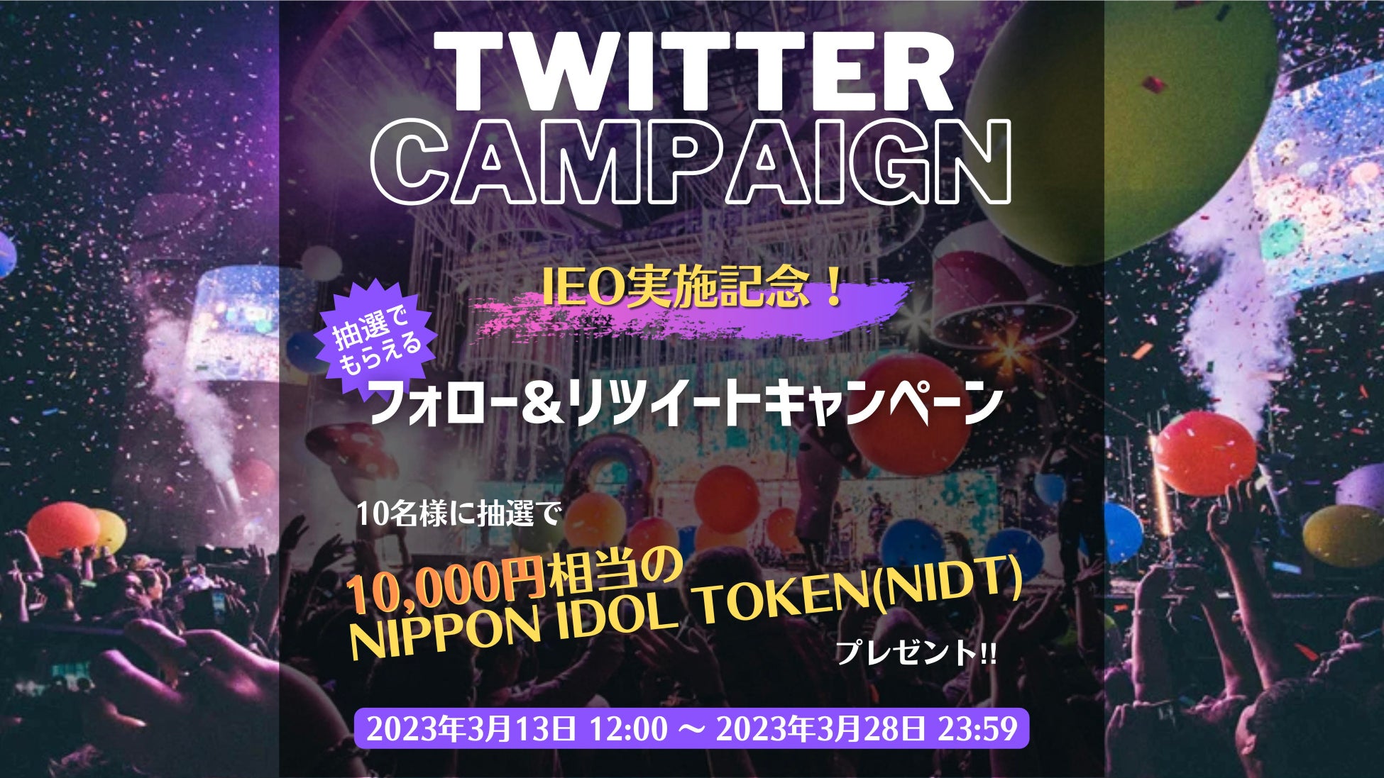 Nippon Idol Token (NIDT) のIEOの実施を記念して、抽選で10名様に10,000円相当のNIDTがもらえる『Twitterフォロー&リツイートキャンペーン』を2023年3月13日より実施します。