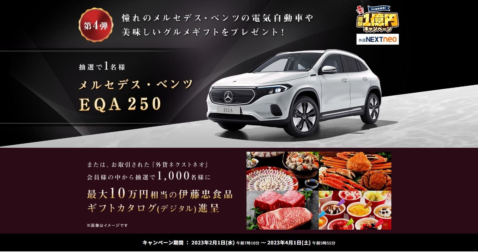 キャンペーンの詳細はキャンペーンツイート(https://twitter.com/gaitame_com/status/1639129919056670722)にてご確認ください。