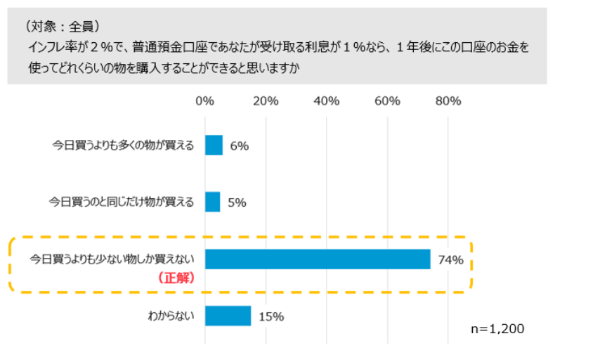 ✓ インフレの資産価値への影響に関する質問の正解率は74%。