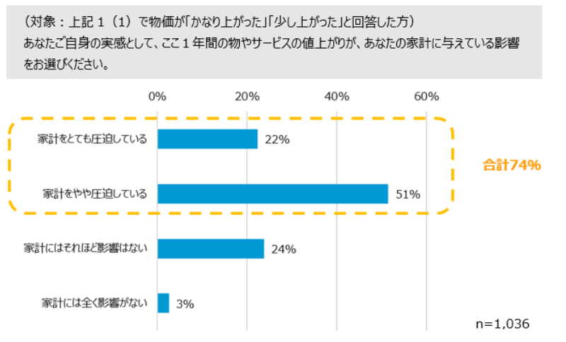➡ インフレは、約6割(86%×74%)の家計の支出に影響を及ぼしている