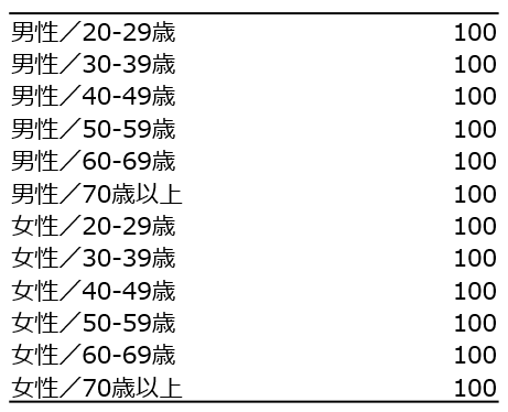サンプル数は1,200。各年代・性別のサンプル数は以下の通り(均等割付)。