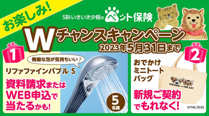 SBIいきいき少額短期保険株式会社(本社:東京都港区、代表取締役社長:採田 祐治、以下「当社」)は、ペット保険の資料請求またはWEB申込をされた方、新規ご契約いただいた方、それぞれを対象としたプレゼントキャンペーンを実施しています。