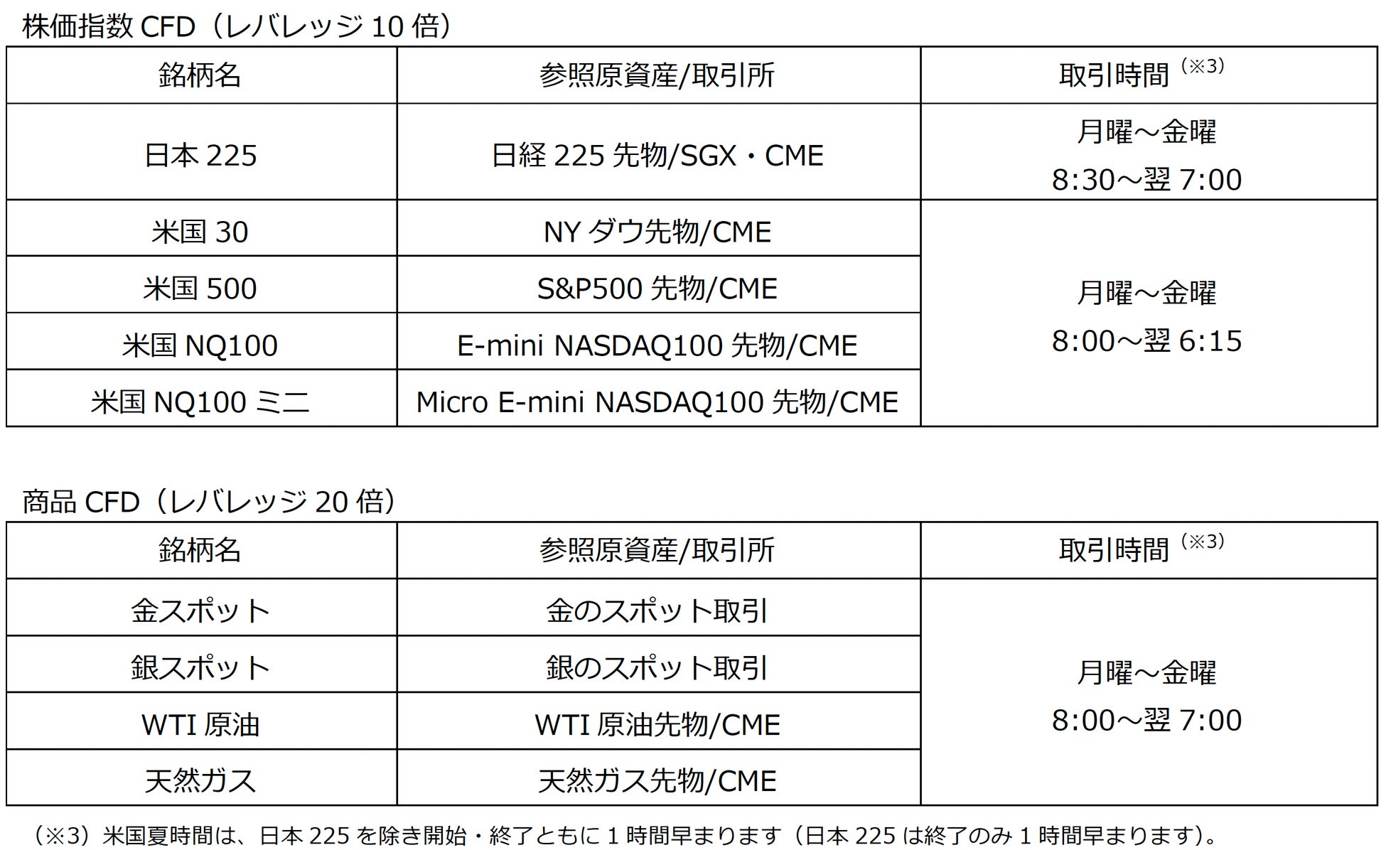 「CFD取引」は、FX取引と同様にレバレッジを効かせて証拠金の数倍の取引をすることができる差金決済取引です。「外貨ex CFD」では、日経225やNASDAQ100など世界の株価指数5銘柄と、金や原油などのコモディティ4銘柄を取引手数料無料でお取引いただけます。