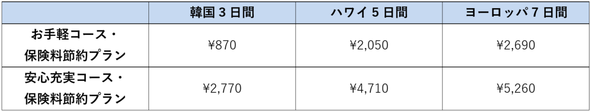 ・旅行代金に応じた620円からのお求めやすい保険料