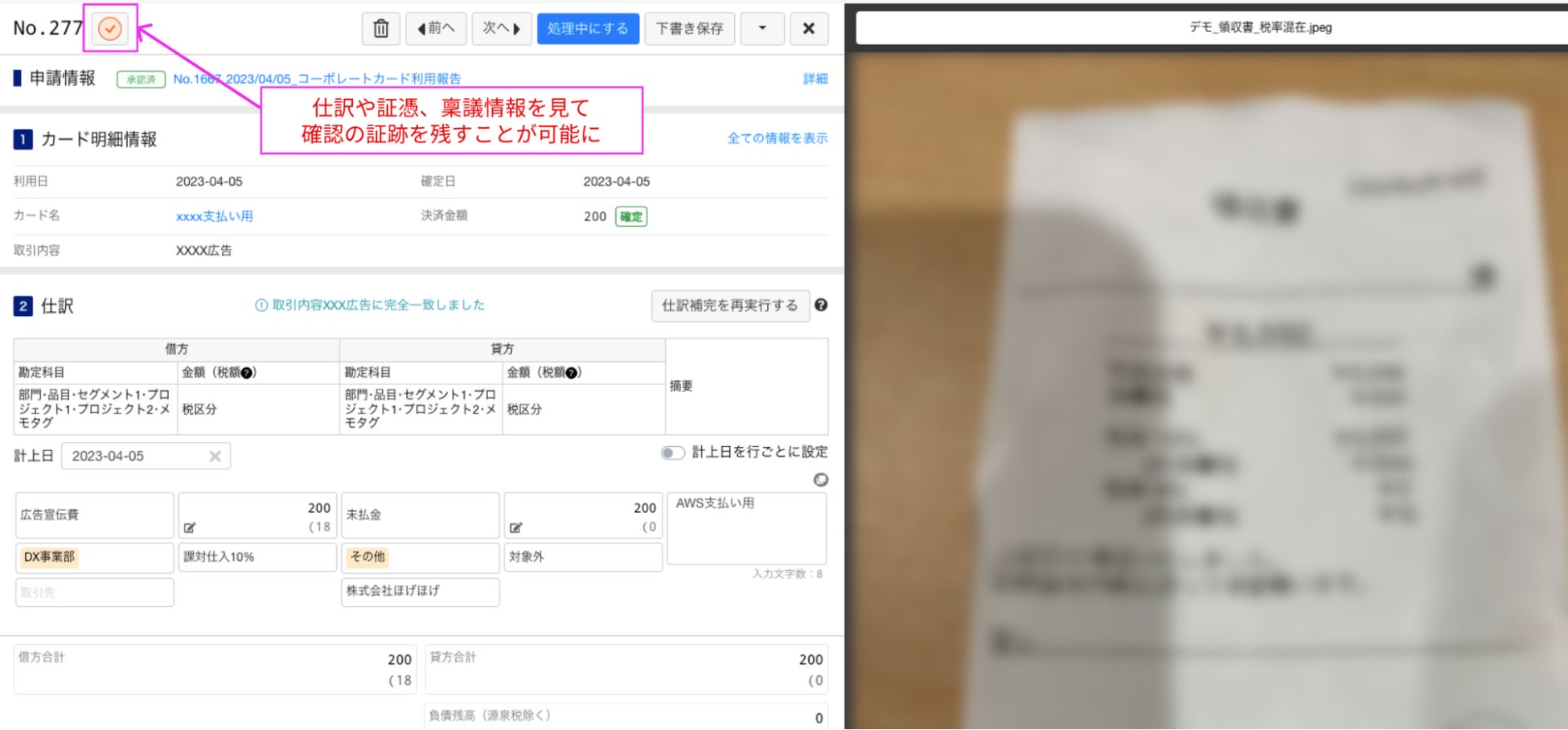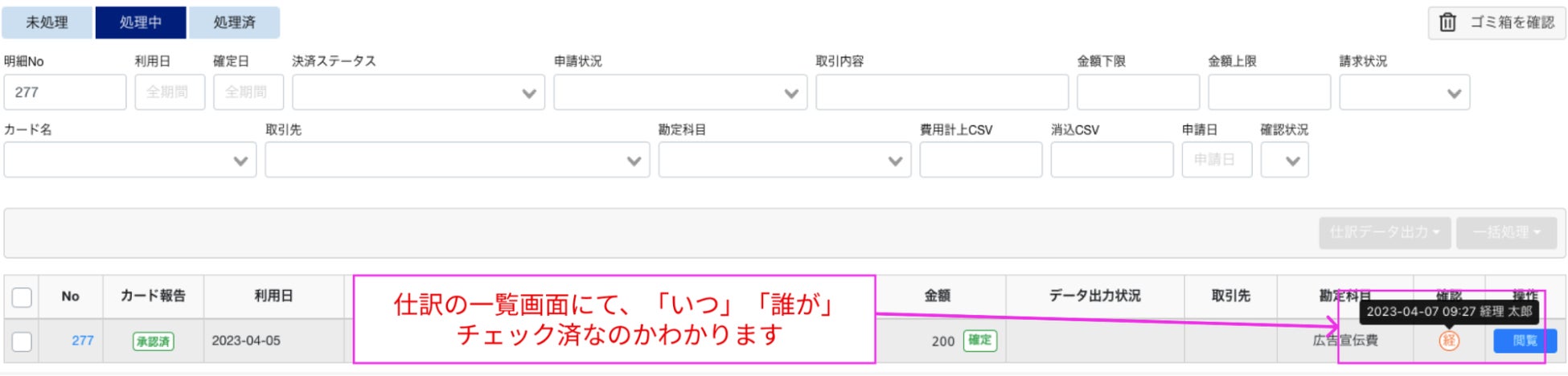 <仕訳確認ページ>