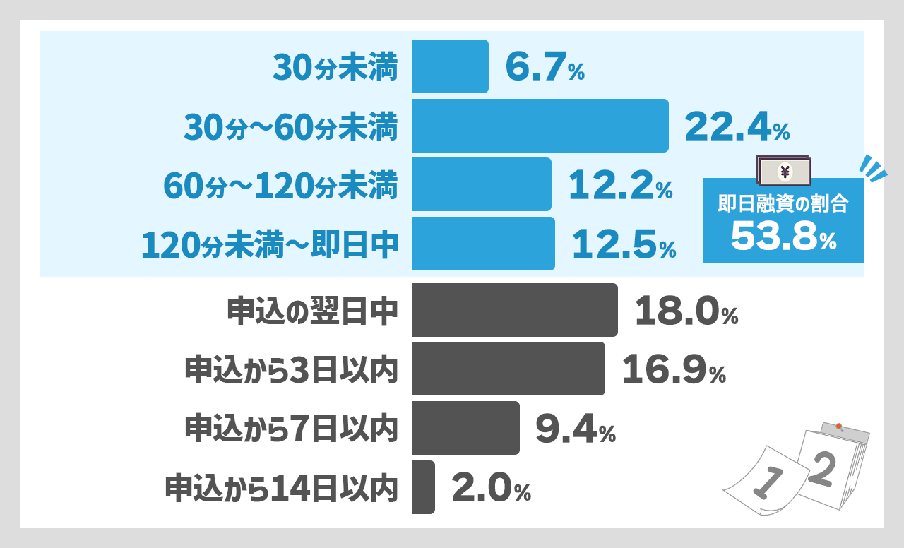 アンケートの結果、53.8%が即日融資を出来たと回答しています。