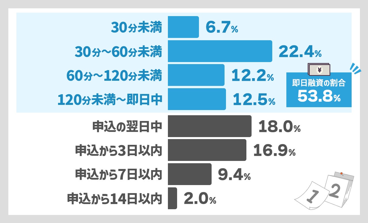 アンケートの結果、53.8%が即日融資を出来たと回答しています。