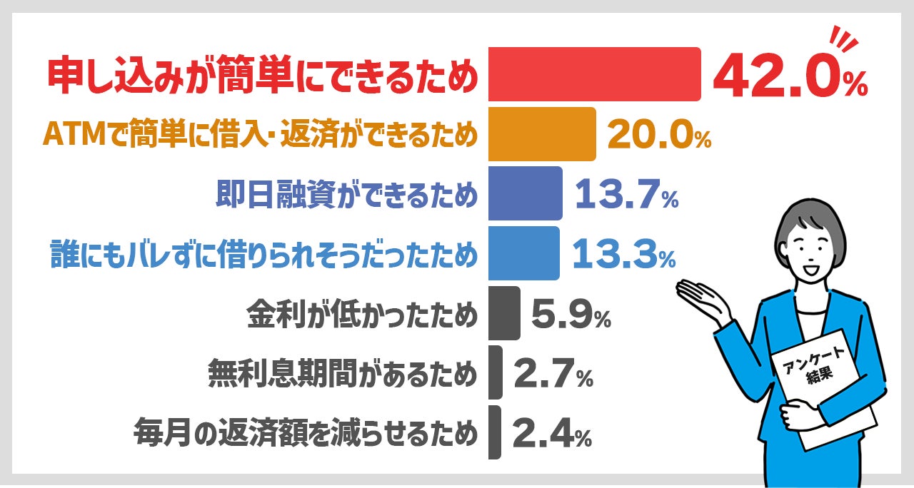 カードローンへ申し込んだ理由について「申し込みが簡単にできるため」が42.0%と最多。