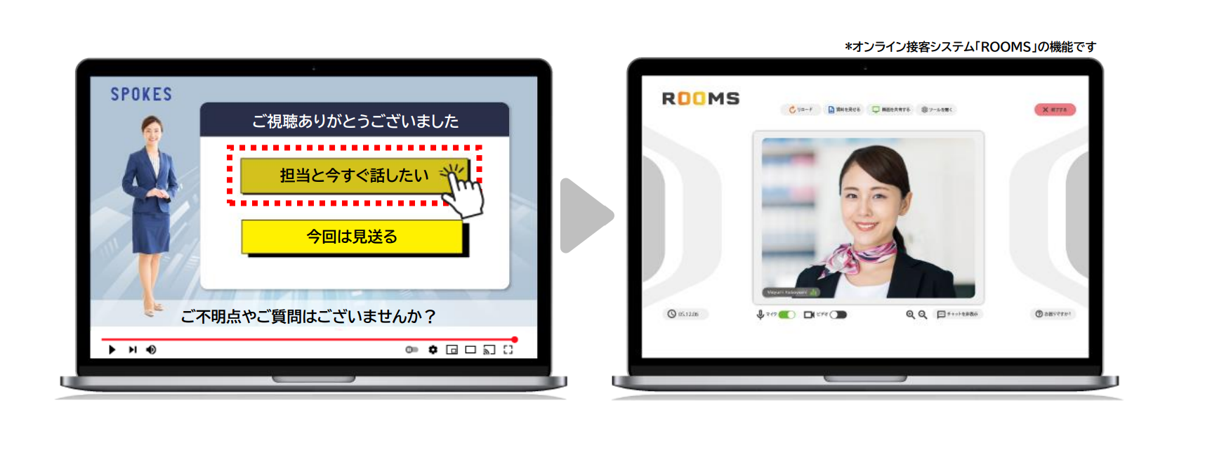 そこで、株式会社BloomActが提供している資料動画化サービス「SPOKES」と「ROOMS」を組み合わせた、多角的なソリューションの提案も推進いたします。