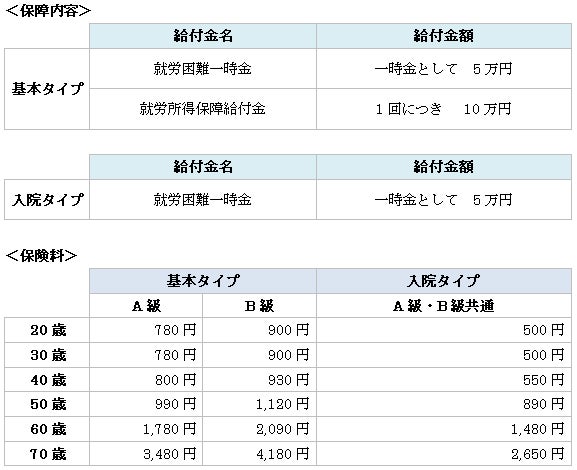 ※基本タイプは、被保険者の職業によりA級・B級があり、保険料が異なります。