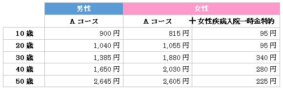 基本タイプ・入院タイプともにAコースの場合