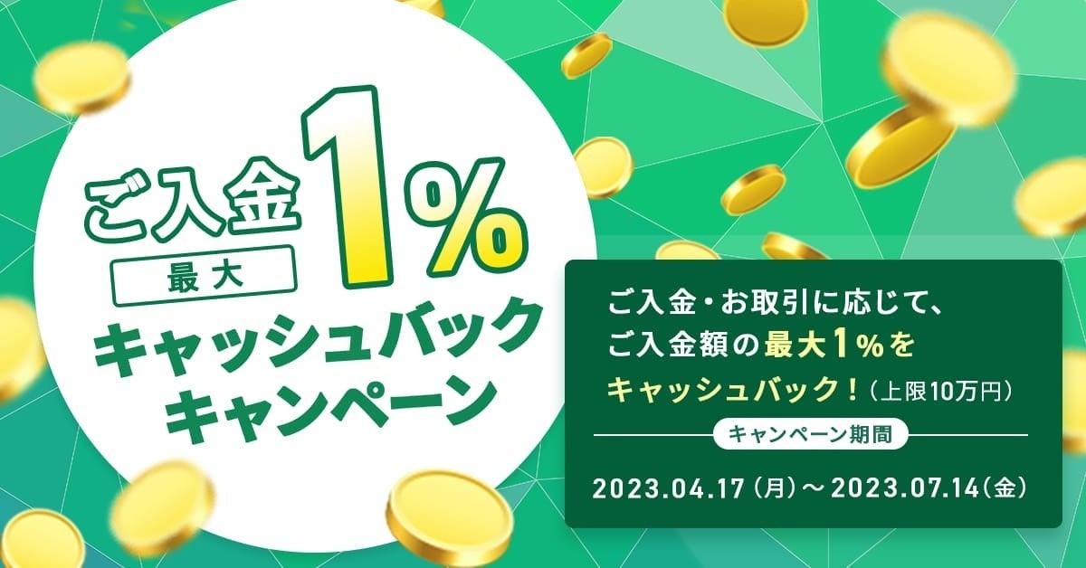 「みんなのFX」及び、「LIGHT FX」では2023年4月17日(月)より「ご入金で最大1%キャッシュバックキャンペーン」を実施いたします。