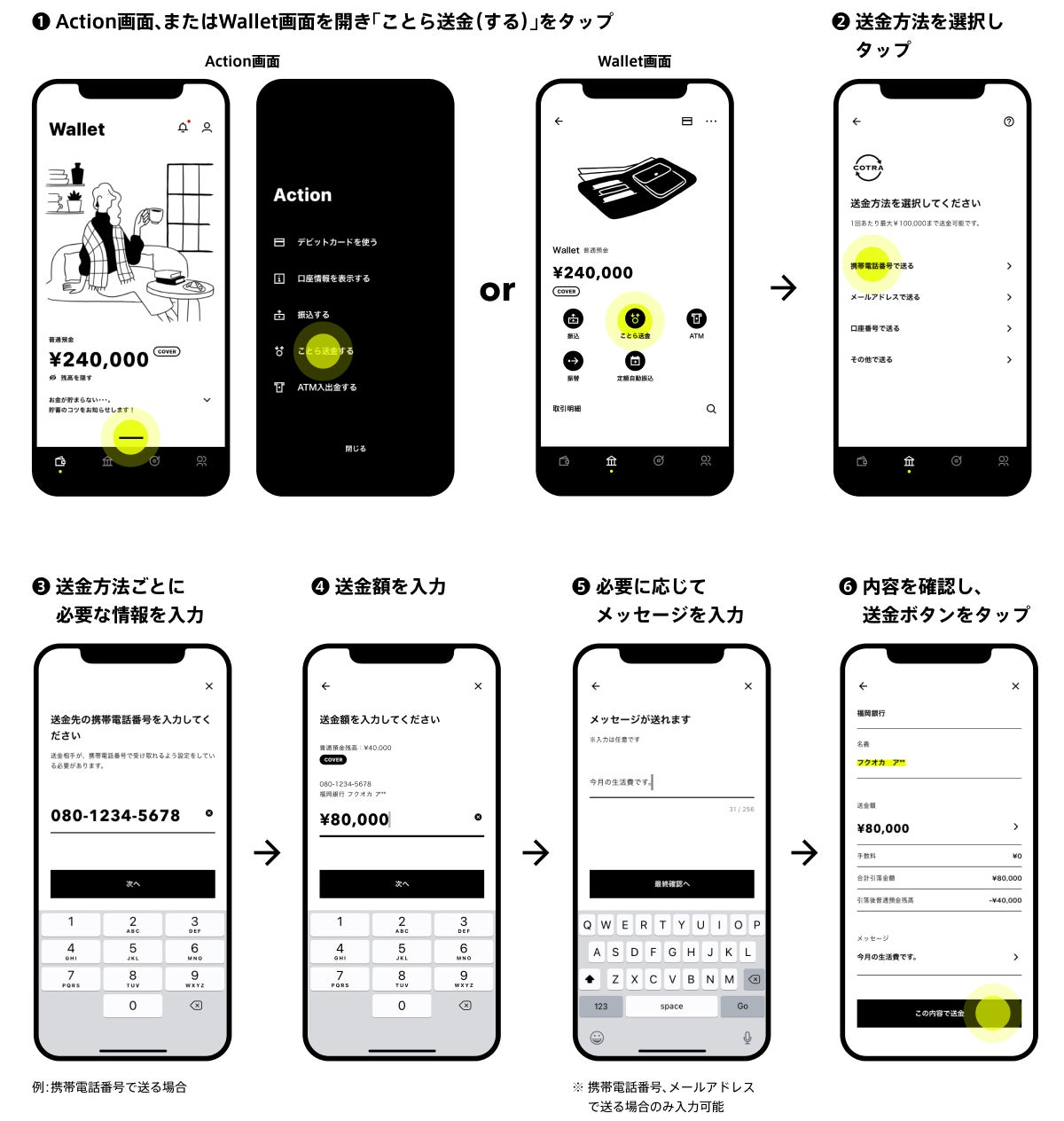 2. 携帯電話番号やメールアドレスでの送金・受取が可能
