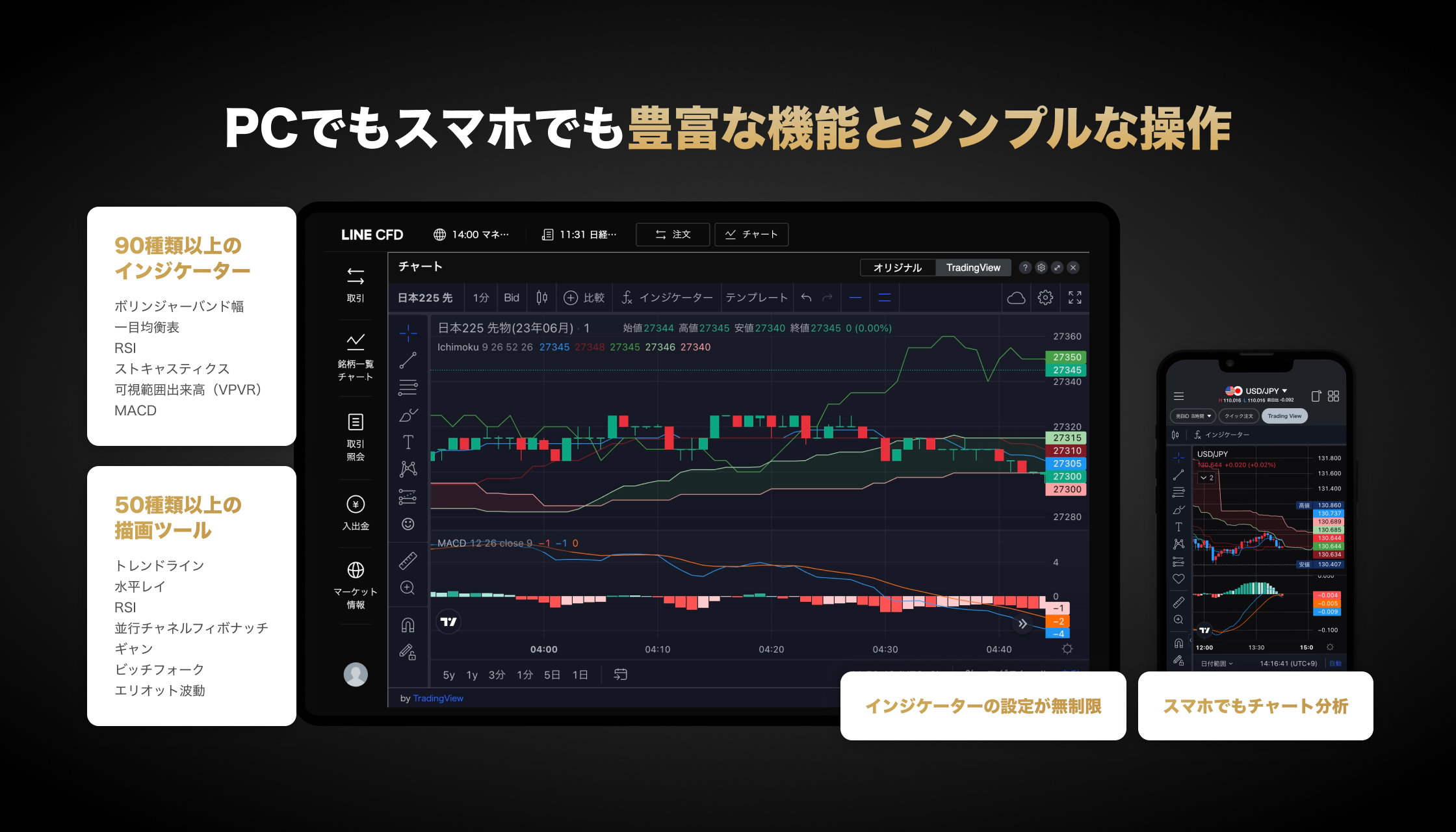 なお、近日「LINE FX」、「LINE CFD」のスマートフォンアプリでも「TradingView」を導入予定です。