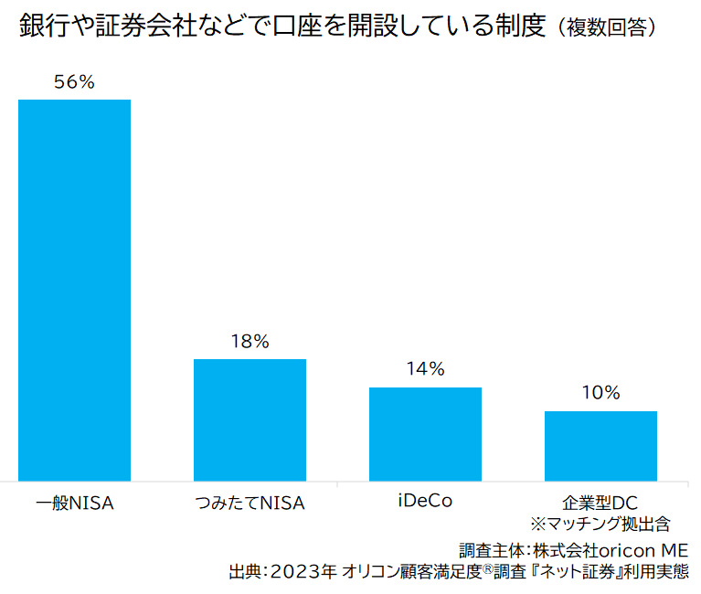- <口座を開設している制度>「一般NISA」が56%で最多 「つみたてNISA」は18%