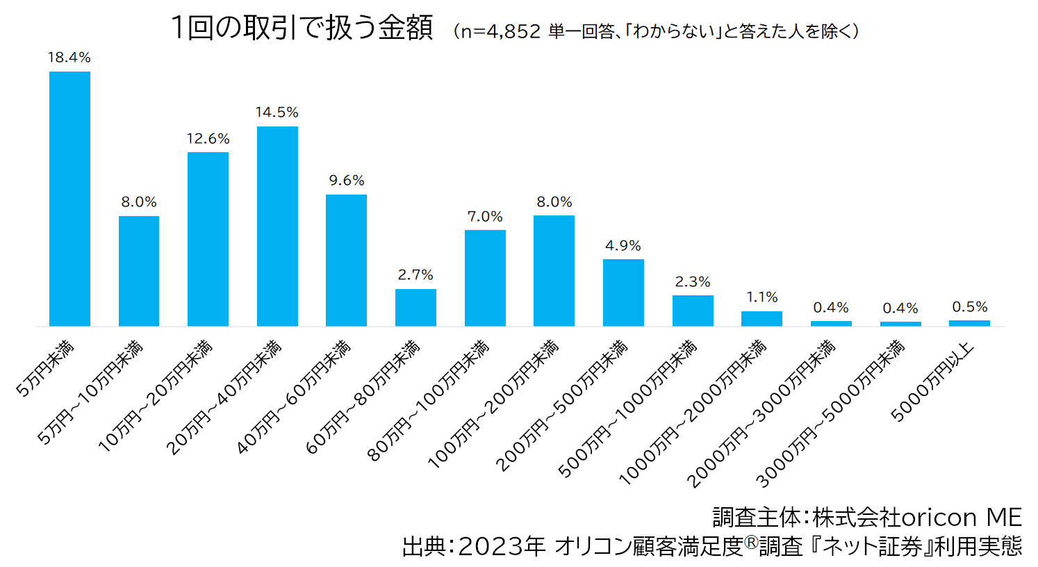 また、1回の取引で扱う金額については、「5万円未満」が18.4%で最多となりました。次いで「20~40万円未満」が14.5%、「10~20万円未満」が12.6%と続いています。