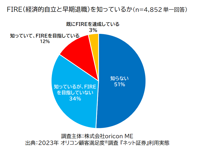 51%がFIREを「知らない」と回答 「目指している」人は12%