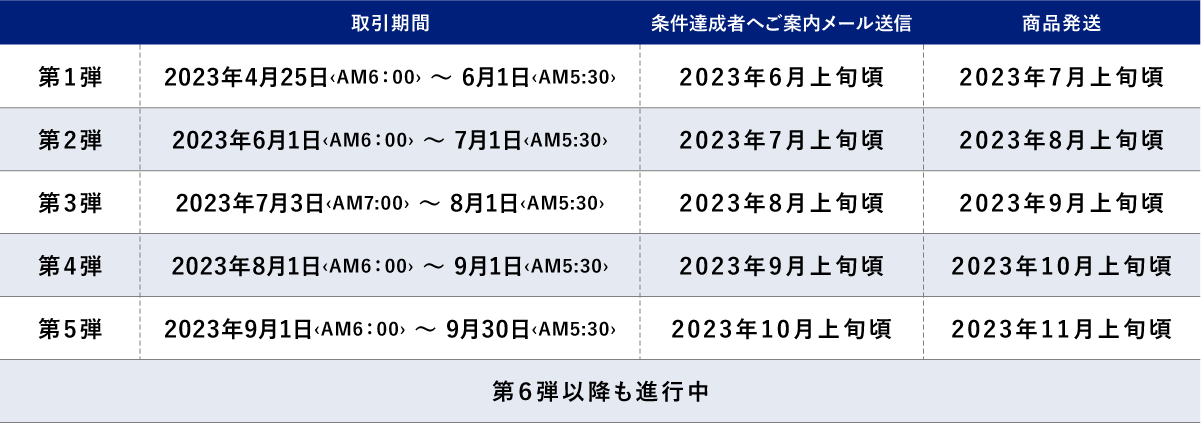 第1弾実施期間:2023年4月25日(火)6時00分~2023年6月1日(木)5時30分