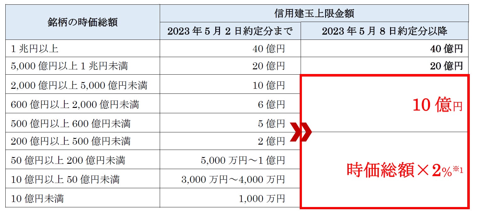 ※1:時価総額50億円未満の銘柄は、100万円単位で上限設定(100万円未満は切捨て)、時価総額50億円以上~500億円未満の銘柄は、1,000万円単位で上限設定(1,000万円未満は切捨て)