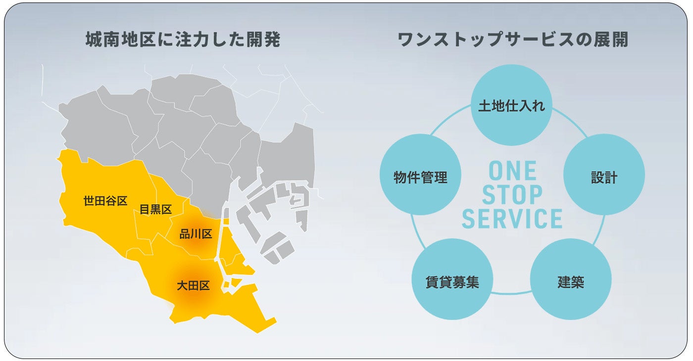 また、同社はワンルームマンションに特化したノウハウを集積しており、自社ブランド『Ludens(ルーデンス)』シリーズでは、土地仕入れ・設計・建築・賃貸募集・物件管理・一棟販売に至るまでを『ワンストップ(一括管理)』体制で行うことができる組織体制を有しています。