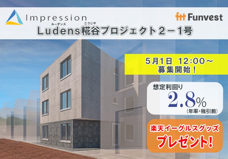 株式会社Impressionは、『Ludens(ルーデンス)』ブランドの投資型コンパクトマンションの開発用地として、2022年9月に東京都大田区西糀谷の土地(以下、「本件開発用地」といいます。)を取得しております。同社は、本ファンドの投資対象である貸付の資金を、本件開発用地上の建物の建築資金の一部として使用する計画です。