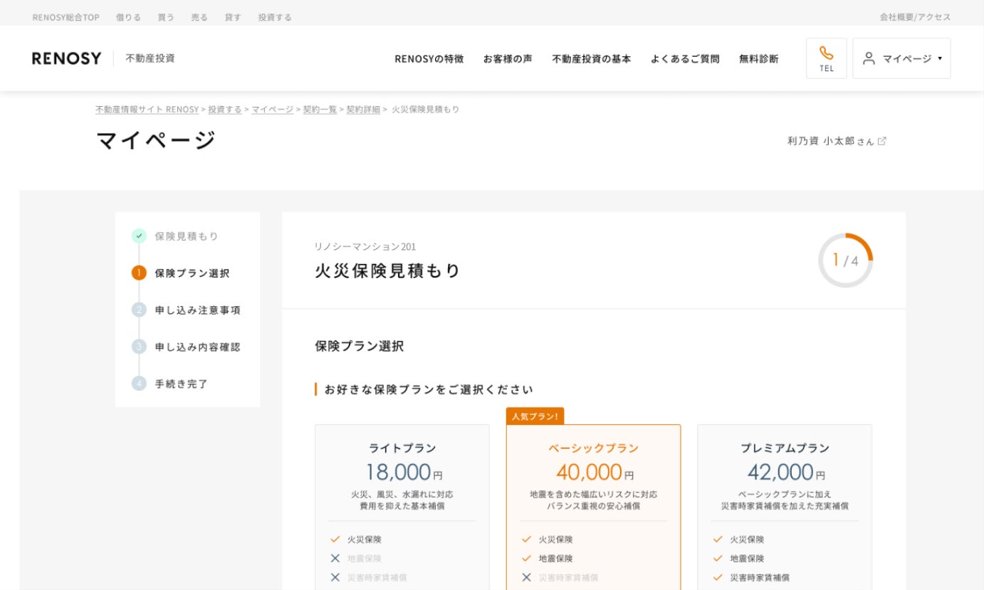 投資用不動産の購入者は、融資を受ける際に火災保険の加入が必要となるケースが多く、保険加入が不動産購入時に発生する多様なタスクの一つとなっており、お客様から「シンプルかつ効率的に火災保険に加入したい」といったニーズをいただいていました。