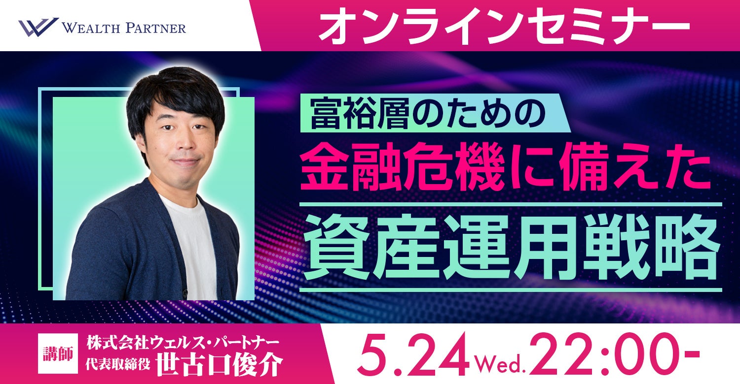 本セミナーでは当社代表の世古口がリーマンショックを乗り越え18年間、富裕層の資産防衛をお手伝いしてきた経験から金融危機に備えた資産運用戦略についてお伝えします。