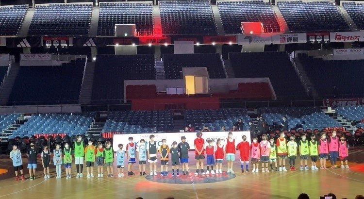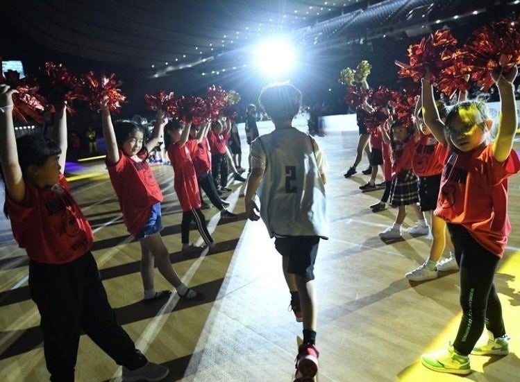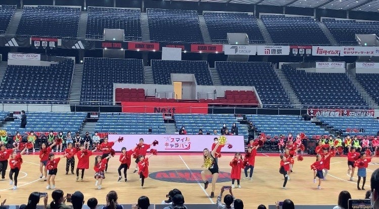 無料招待いただいたアルバルク東京の試合を観戦後、プロのバスケット選手が使用したコート上で最後にエキシビジョンマッチを行いました。エキシビジョンマッチの冒頭では、チアの子どもたちがアルバルクチアによるレッスン覚えた、SOMPOダンスプロジェクト の「足が速くなるダンスアルバルクチアオリジナルバージョン」を披露し、その後、アカデミーコーチのレッスンを受けた子どもたちによる白熱した試合が繰り広げられました。参加者からは「家に帰ってからも音楽がかかると踊るようになり、本当に楽しかったのだと思います」「コーチとの練習が楽しかった」などのお声をいただきました。そのほか、本番さながらの音響・照明演出やアルバルク東京メインMCによる司会進行により盛大な盛り上がりをみせ、参加いただいた子どもたちと保護者の皆さんにたくさんの笑顔を届けることができました。