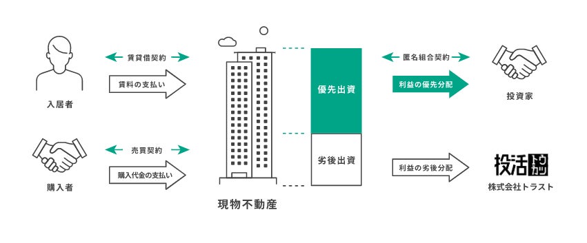 ■優先劣後⽅式の採⽤ 優先劣後⽅式により、投資家の皆様へは優先出資分としてファンド組み⼊れ総額の70%(630万円)を募集しま す。⼀⽅、当社はファンド全体の調達額の30%(270万円)を劣後出資致します。万⼀、運⽤による損失が発⽣した場合でも当社が先に損失部分を負担しますので、投資家の皆様は当社より優先して出資⾦の返還を受けることが できます。