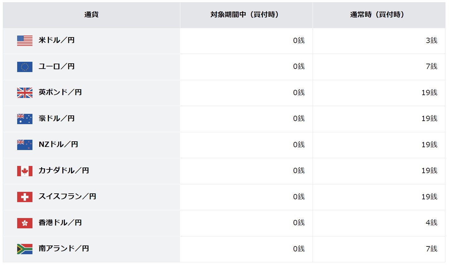 ・本企画終了後は、当社の通常時の為替コストが適用されます。