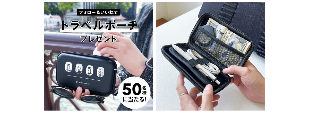 | プレゼント内容 | みんなの銀行オリジナルイラスト「トラベルポーチ」50名 |