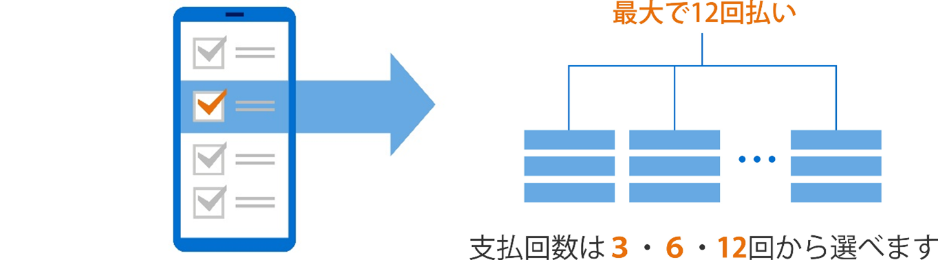 ●カードご利用項目ごとに、3回、6回、12回払いから選択いただくことが可能。支払い金額と期間を指定することにより、計画的なキャッシュフロー管理を支援します。