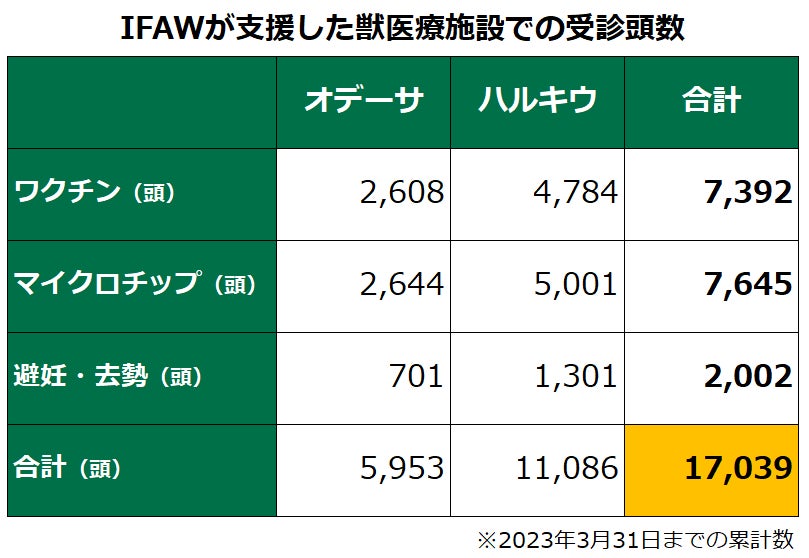 ② ウクライナ南部のオデーサと北東部のハルキウの獣医療施設を支援し、避難者や市民・シェルターのペットに対してワクチン接種とマイクロチップ装着、避妊・去勢手術を実施(171,500米ドル)