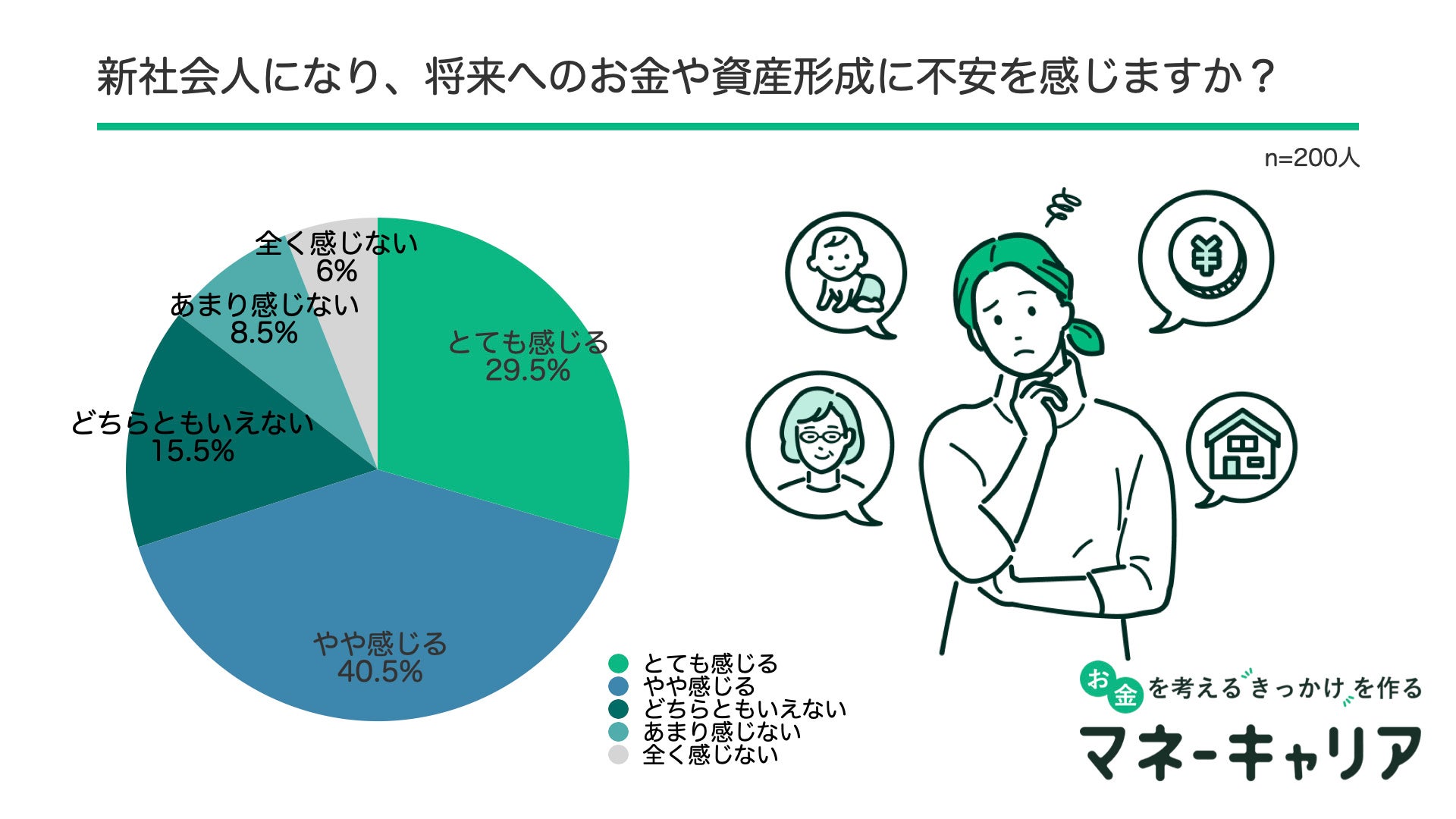 「新社会人になり、将来へのお金や資産形成の不安は感じますか?」と質問したところ、70%の人が「不安を感じると」と回答、誰に相談していいのかが不明だったり、何から手をつけたらいいかわからない印象でした。