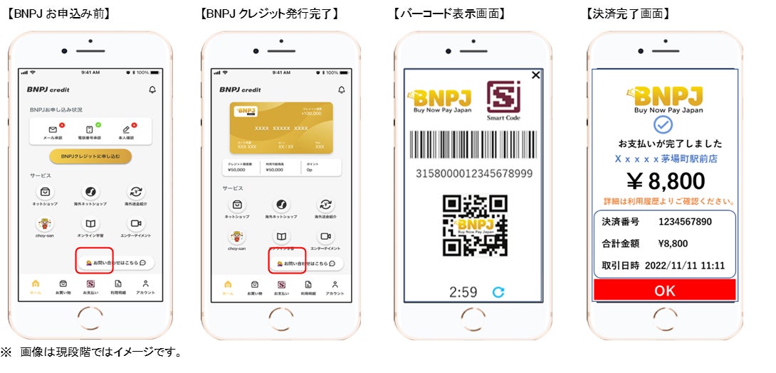 「BNPJ Credit」は、主に、日本で暮らす外国人を対象とする総合金融スマートフォンアプリです。「BNPJ Credit」アプリをスマートフォンにダウンロードし、「Smart Code」規格に準拠したQR・バーコードを表示し、「Smart Code」加盟店で決済ができます。「BNPJ Pay」を利用すれば、銀行口座や他のクレジットカードからのチャージなしに後払いができます。