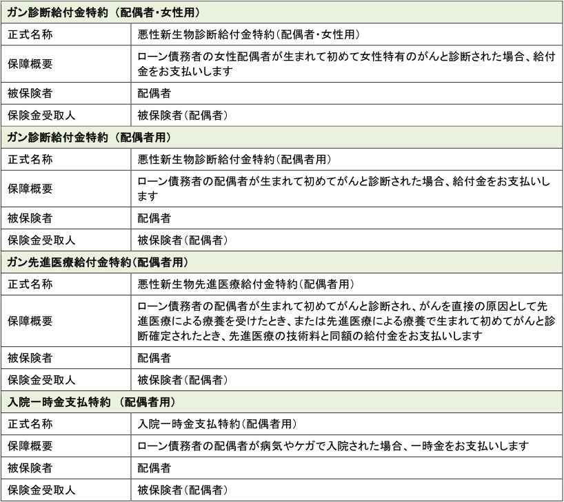 「配偶者の保障」は、「就業不能信用費用保険」を主契約とし、これに付帯される特約です。