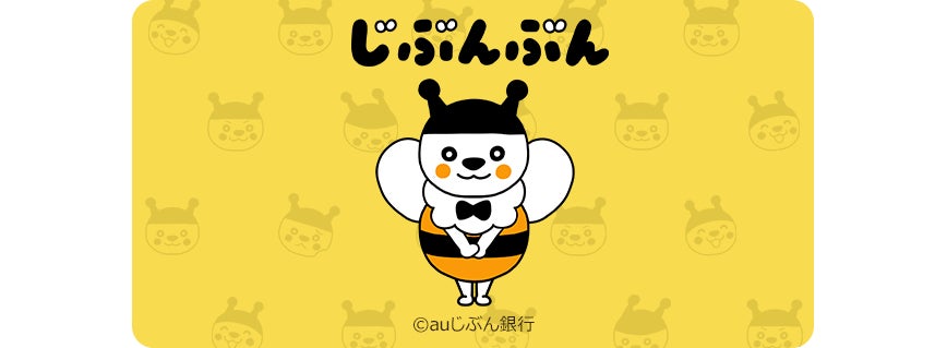 ハチは巣の中にたっぷり蜜を蓄えることから、金運アップや幸運の象徴とも言われています。その縁起のよさから、公式キャラクターがお客さまに幸運を届ける存在になればと思い、ハチをモチーフにしたデザインに決定しました。丸いフォルムと愛らしい表情が特徴で、ぶんぶん飛ぶハチの羽音と、auじぶん銀行の行名をかけて「じぶんぶん」と命名しました。