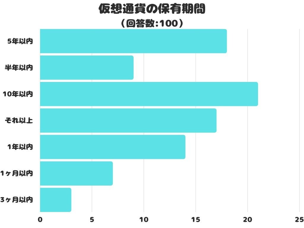 仮想通貨の保有期間に関して、どの程度の期間を想定しているかをアンケートにて調査したところ、1位は「10年以内」でした。